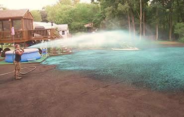 After the hydro seed is first applied to your new lawn, let it dry completely. There is a special Tackifier (bonding agent) used to bond the hydro seed to the soil. When it is dry, you will see a lighter green color throughout your yard and the green mulch will feel crusty. Once it is dry, it will be okay to walk on the hydro seed surface for watering purposes only. Divert all gutter downspouts away from hydroseeded areas to prevent wash outs. It is very important to keep all traffic to a minimum on your lawn for the first month, including pets.